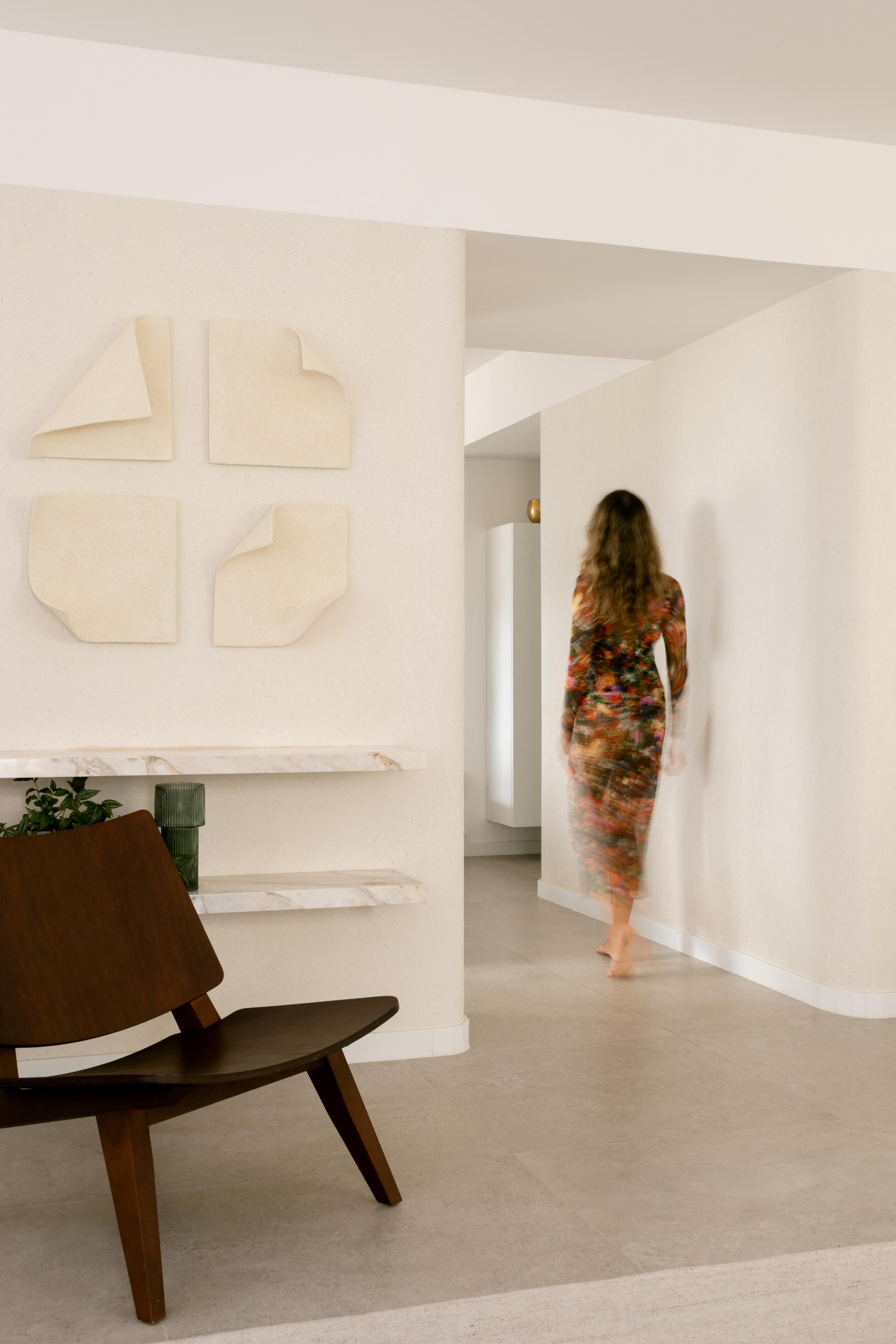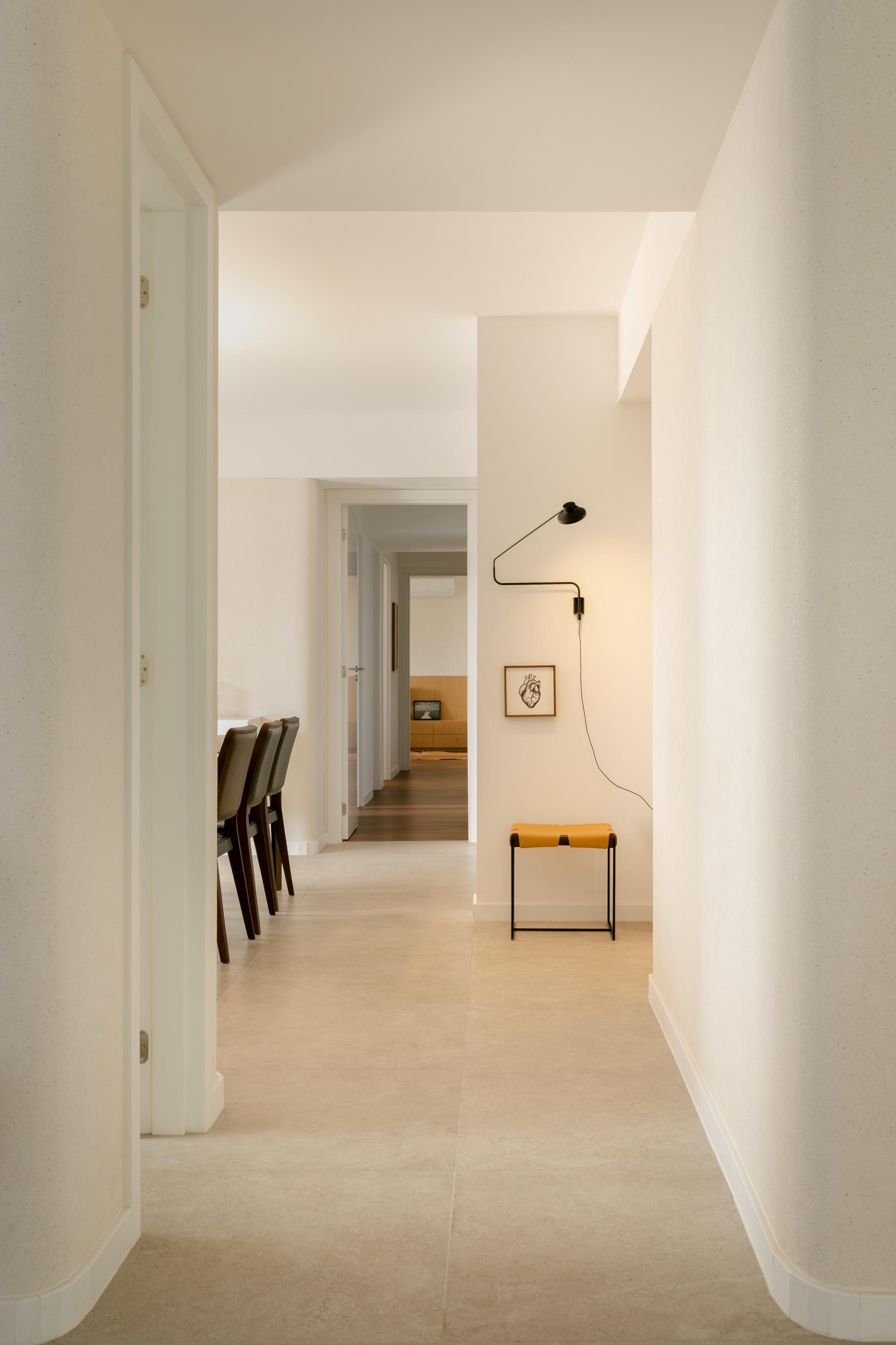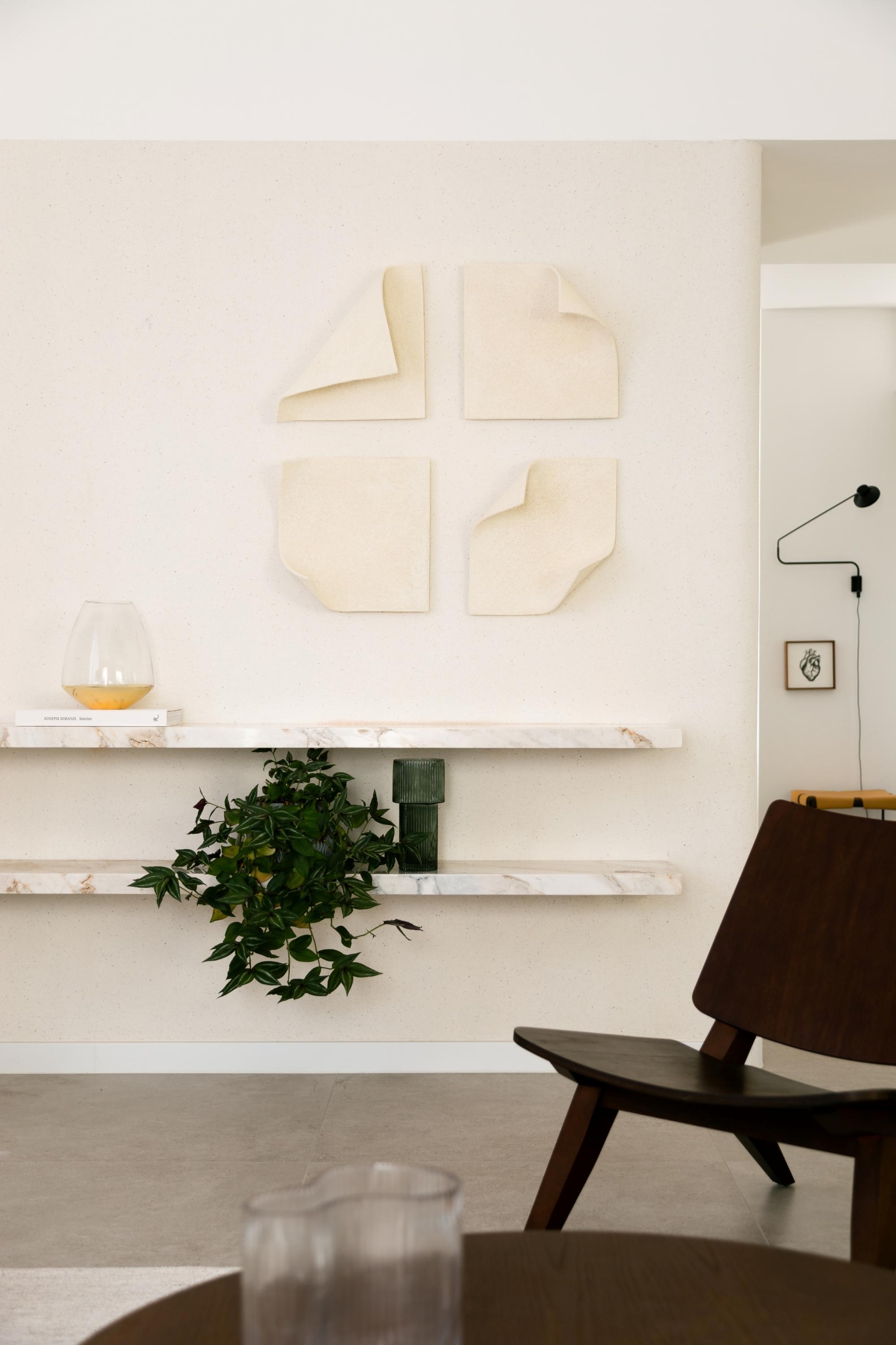 Apartamento galeria. Branco sobre branco e sobre texturas.