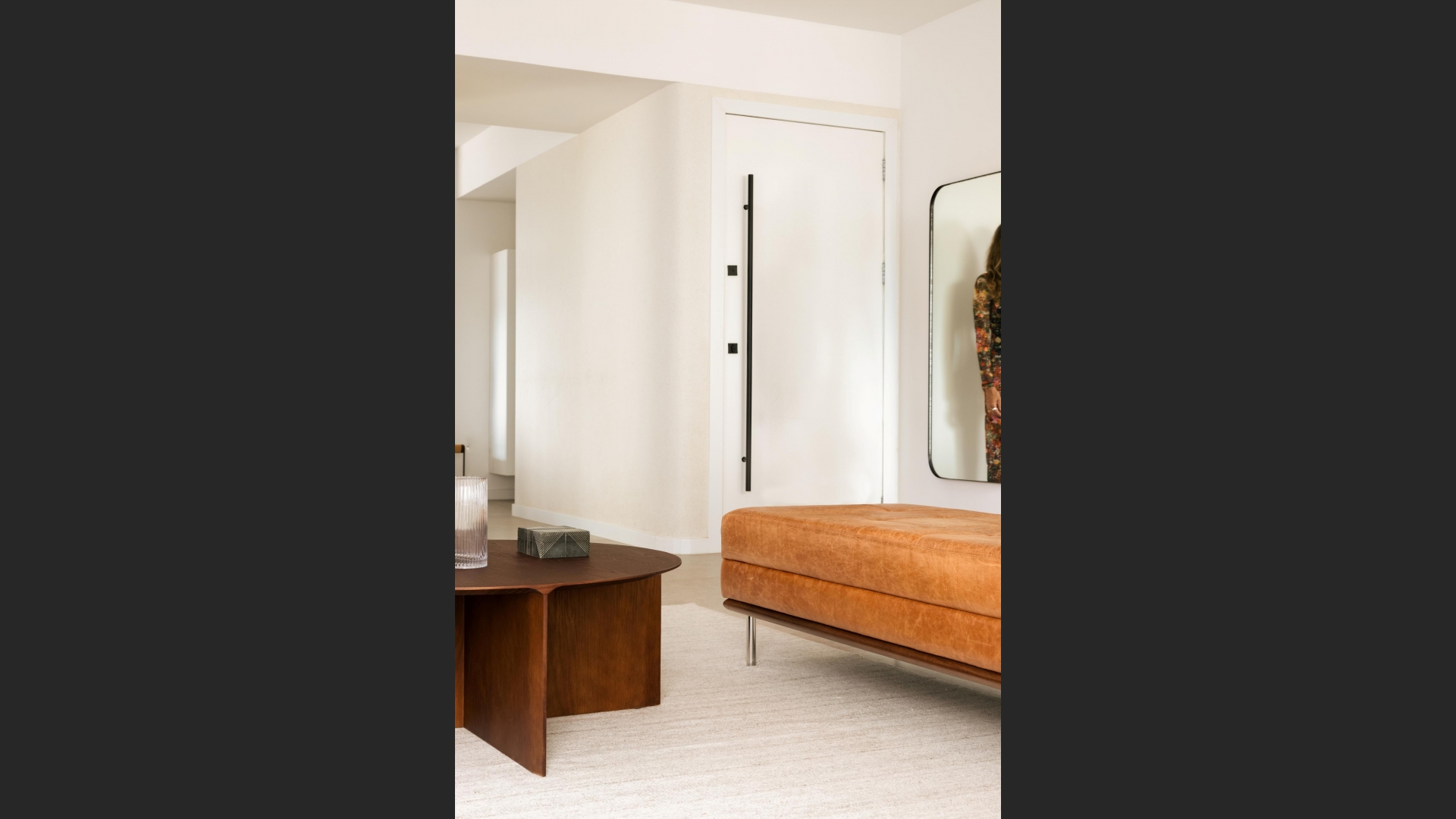 Neste apartamento, que fica num prédio que tem arquitetura tão importante, com sacadas arredondadas, reorganizamos a volumetria interna criando volumes com os cantos arredondados.