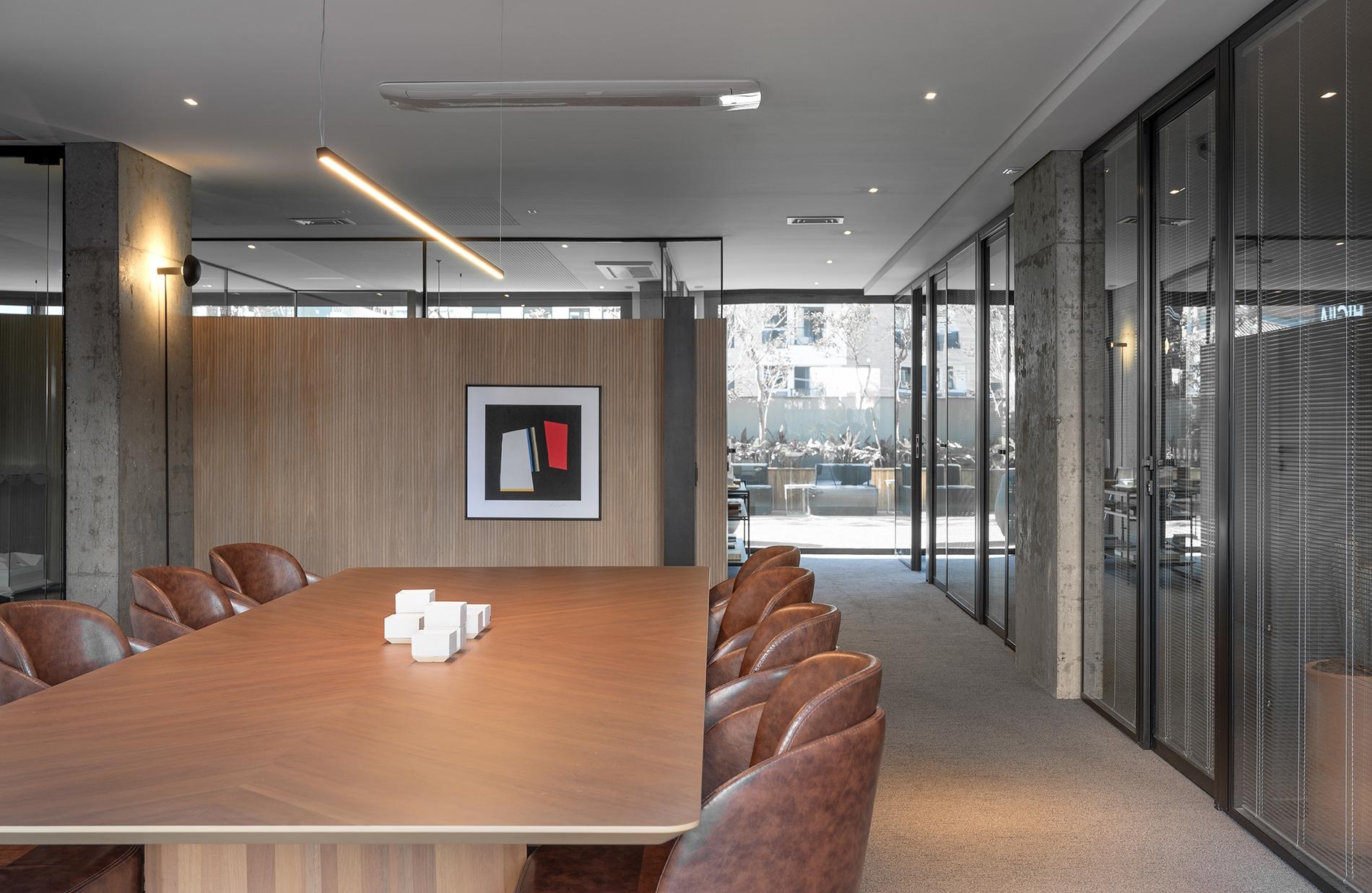 Sala de reuniões privativa com integração visual com escritórios dos sócios