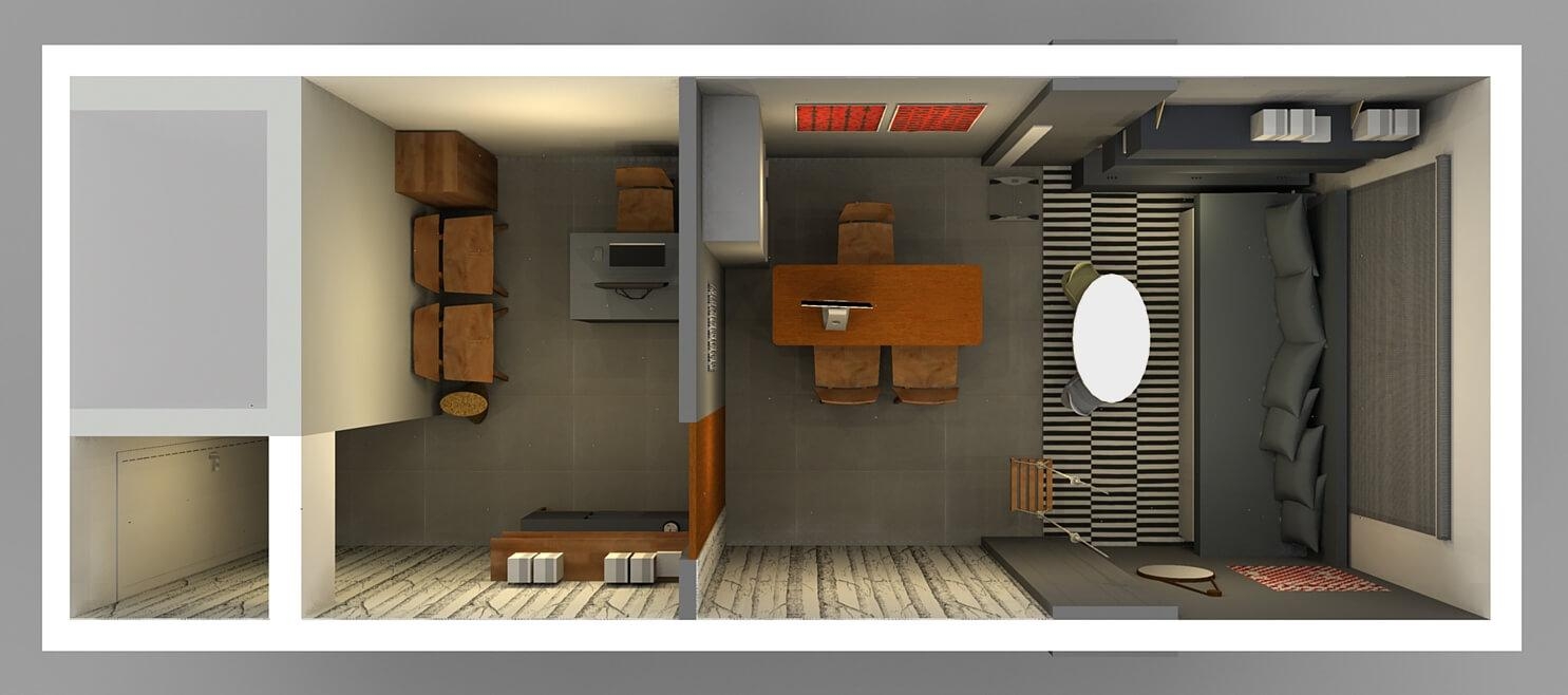 01. Pequena sala de 26m2 deu lugar a consultório com recepção e espaço de atendimento tanto individual quanto coletivo, para adultos e/ou crianças, com variedade de acomodações e espaço certo para os apetrechos utilizados nas diversas técnicas de tratamento. O papel de parede estampado contribui para criar um mundo próprio ali dentro, lúdico e tranquilo na medida certa. Sua aplicação, em toda a extensão da sala, integra os ambientes e reforça sensação de amplitude em todos eles.